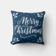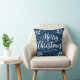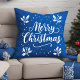Elegant vrolijk kerstscript gooi kussen. Het ontwerp is voorzien van de tekst "Merry Christmas" in witte typografie met witte hulstbessen, sneeuwvlokken en wervelende accentelementen tegen een blauwe achtergrond. Het is het beste gepersonaliseerde cadeau voor jezelf, je vrienden, familieleden en zelfs buren. We hebben 35+ meer kerst kussens in ons collectie die je zeker zal houden. Bekijk het en ontvang het beste kerstcadeau met speciale wensen voor uw speciale mensen. vrolijk kerstfeest!