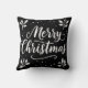 Elegant vrolijk kerstscript gooi kussen. Het ontwerp is voorzien van de tekst "Merry Christmas" in witte typografie met witte hulstbessen, sneeuwvlokken en wervelende accentelementen tegen een zwarte achtergrond. Het is het beste gepersonaliseerde cadeau voor jezelf, je vrienden, familieleden en zelfs buren. We hebben 35+ meer kerst kussens in ons collectie die je zeker zal houden. Bekijk het en ontvang het beste kerstcadeau met speciale wensen voor uw speciale mensen. vrolijk kerstfeest!