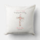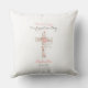 Elegant gooit kussen ter bevestiging met een floraal kruis op een witte achtergrond. Pas tekst, naam en datum aan. Maakt een doordacht geschenk voor bevestiging.
