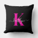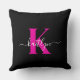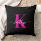 Elegant zwart Hot Pink Script Monogram Kussen