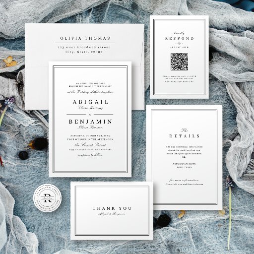 Elegant zwart-wit minimalistisch ontwerp, eenvoudig en stijlvol. Geweldig voor een moderne klassieke bruiloft, een oude bruiloft en een officiële bruiloft. Alle overeenkomende stukken in collectie bekijken