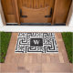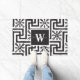 Elegant modern zwart-wit monogram doormat in de klasstijl. Een ontwerp van de griekse sleutel zwart-wit, extra mooi met de zwarte florale. Heel klastig met een zwarte grens in het midden van het hormoon. Initiaal W en Amerikaanse achternaam Wilson. Hier kunt u afbeelding veranderen en uw eigen naam schrijven.