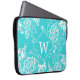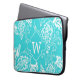 Elegantaqua blauw decoratief bloemmonogram laptop sleeve