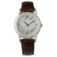 Een klassiek dameshorloge met elegante waterverf pastelkrijt stilleven kunst gedrukt op een platina kleur achtergrond. Eenvoudig monogram initialen wijzigen of verwijderen met behulp van de meegeleverde Sjabloon. Ontworpen met gecrosst bruin lederen band en zilverkleurig hoesje. Er zijn 15 stijlen beschikbaar, waarvan vier oversized. Driehandse analoge Japan Quartz®. Zie "Over dit product" aan de zijkant voor gedetailleerde specificaties over maten, materialen, sluitingstype, garantie.