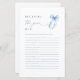 Voeg een leuke maar elegante draai aan je vrijgezellenfeest toe met het spel "Elegant Blue Bow Who Knows The Bride Best". Met een zacht blauw boogontwerp in combinatie met sierlijke typografie, is dit spel een stijlvolle manier om uw gasten te betrekken en de aanstaande bruid te vieren. Het spel stelt leuke, persoonlijke vragen over de bruid, waardoor gasten kunnen show hoe goed ze haar kennen. Perfect voor een chique vrijgezellenfeest, dit spel voegt een luchtig element aan het evenement, terwijl het houden van de sfeer verfijnd en leuk. Het is een geweldige manier om blijvende herinneringen te creëer tijdens het vieren van de bruid!
