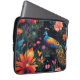 Elegante Blauwe en Gouden Peacock in Roze Tuin Laptop Sleeve