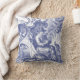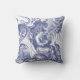 Mooi blauw en wit toile patroon die een man en een hond met een Roccocco of een Recente Barokke rand kenmerken.
