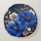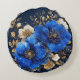Een levendige digitale illustratie met een boeket blauwe en witte bloemen met gouden details, tegen een donkere contrasterende achtergrond, die een gevoel van luxe en artistieke verfijning oproept.