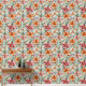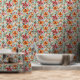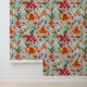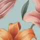 Schil- en stokbehang met floraal botanisch patroon van leliebloemen met een blauwgroen kleur achtergrond.