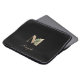 Elegante zwarte laptophoes met een gouden botanische monogram in het midden.