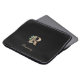Elegante zwarte laptophoes met een gouden botanische monogram in het midden.