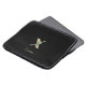 Elegante zwarte laptophoes met een gouden botanische monogram in het midden.