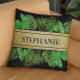 Voeg schoonheid, persoonlijkheid en luxe toe aan uw dagelijkse loungen met dit botanische groene werpkussen, met weelderige tropische bladeren en een faux gouden naamband. Perfect voor een gepersonaliseerde inrichting, housewarming geschenken, of het toevoegen van een chique accent aan elke kamer. Ontworpen als aanvulling op de moderne, tropische of natuur-geïnspireerde esthetiek. Pas het aan met jouw naam of een geliefde voor een unieke touch.