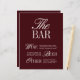 Maak uw receptie compleet met dit elegante minimalistische barbord, ontworpen om uw gasten met stijl te begeleiden. Met een schone ivoren achtergrond met verfijnde serif- en scripttypografie in de diepe bordeaux, geeft dit bord uw selectie van wijn, bier en drank op een tijdloze en verfijnde manier weer. Perfect voor moderne bruiloften, wijngaardrecepties, herfstfeesten of formele avondceremonies, het brengt zowel praktische als elegantie in uw baropstelling. Coördineert naadloos met de volledige "Sabrina" bruiloft briefpapier suite voor een samenhangende look.