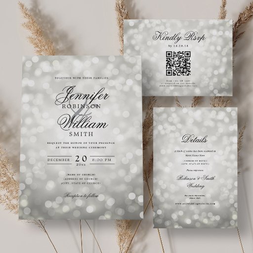 Wedding Set w/ Bokeh Lights Romantic Script SilverOntworpen door Marta Burton