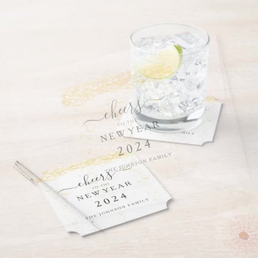 Gepersonaliseerde Elegante Champagne Bubbles Oudejaarsavond papier Onderzetter,