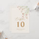 Een vrijstaande tafel nummerkaart versierd met delicate wildflower illustraties.