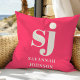 Elegante felroze monogram initialen kussen