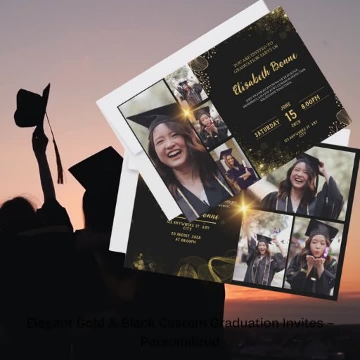 Elegante Gold & Black Graduation Party Invitation Sjabloon met 4 fotoslots | en stijlvol design! ______________________ Vier de mijlpaal van uw afstudeerder in stijl met onze prachtige Gold & Black gepersonaliseerde afstudeeruitnodigingen! Perfect voor feesten, ceremonies of open huizen, deze elegante uitnodigingen zijn voorzien van een tijdloos ontwerp met luxe gouden accenten en strakke zwarte achtergronden. Volledig aanpasbaar, kunt u namen, data, foto's en schoolkleuren toevoegen aan de unieke persoonlijkheid van uw afstudeerder. Kies uit digitale of afdrukbare formaten voor probleemloos bewerken en snelle levering. Ideaal voor afstuderen op de middelbare school, hogeschool of universiteit, deze uitnodigingen zetten de toon voor een gedenkwaardige gebeurtenis. Premium kwaliteit en aandacht voor detail zorgen ervoor dat uw uitnodigingen indruk maken op gasten voordat het feest zelfs begint. Blader door bijpassende bedankkaarten en decor om uw thema te voltooien! 🎓✨