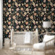 Dit prachtige behang heeft een bloemmotief in goud, blauwgroen, blush roze en gebroken wit op een zwarte achtergrond. De achtergrondkleur kan aan om het even welke kleur worden aangepast u zou willen gebruikend het aanpassingshulpmiddel! Geweldig voor elk gebruik!