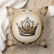 Een prachtig versierde gouden kroon met ingewikkelde design omgeven door een bloemmotief, symboliseert royalty, luxe en feest, tegen een zachte, neutrale achtergrond die zijn vorstelijke elegantie versterkt.