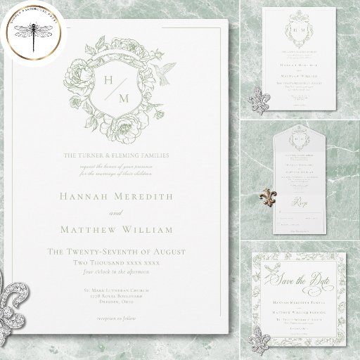Elegant Green Chinoiserie Bird & Crest WeddingOntworpen door Kathe Santillo