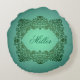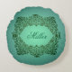 Dit elegante kussenontwerp heeft een groene achtergrond omlijst door een damast patroon met ingewikkelde bloemen- en scrolldetails. In het midden wordt in een verfijnd script de naamtekst weergegeven, waardoor deze een persoonlijk tintje krijgt. Zowel het naamveld als de achtergrondkleur kunnen volledig worden gewijzigd volgens uw wens, waardoor het een veelzijdig ontwerp is dat zich aanpast aan uw stijl of inrichting. De combinatie van het versierde damask lijst en het aanpasbare centrum creëer is een tijdloos, verfijnd accent dat perfect is voor huisdecoratie, geschenken of speciale gelegenheden.