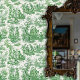 Elegante groene toile de jouy behang
