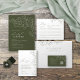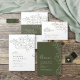 Elegante delicate hand getekende bloem illustratie en moderne script typografie details, in donkere salie groen en witte kleur, eenvoudig en romantisch. Geweldige bloemenbruiloft uitnodigingen voor moderne rustieke bruiloft, country tuin bruiloft en eenvoudige boho bruiloft in de zomer en winter. Volledig aanpasbaar met alle kleuren die bij uw trouwthema passen. Bekijk alle bijpassende stukken in collectie.