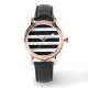 Elegante klassieke zwarte witte strepen leer & gou horloge