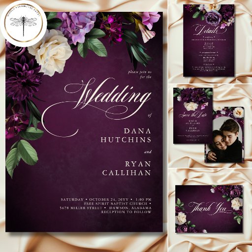 Stap in een rijk van prachtige elegantie met onze bloemendonkere en humeurige bruiloft bewaar de datumfotokaart. Ontworpen om de zintuigen te boeien, beschikt deze uitnodiging over een opvallende bourgondische achtergrond versierd met een adembenemende uitbarsting van bloemen in diep bordeaux, lavendel, lila, romige tinten, aangevuld met weelderig donkergroen gebladerte. De romige elegante scripttekst voegt op subtiele wijze een vleugje romance toe aan de algehele allure. Uw favoriete koppels foto siert de achterkant. Omarm de weelde van de rijke tonen en zet de toon voor uw speciale dag met dit prachtige ontwerp, zeker om een blijvende indruk op uw gasten te laten. Creëer door Simply Farmhouse Press.