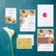 Elegante mosterd zonnebloem kalligrafie RSVP kaartje