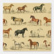 Patroon met verschillende rassen van paarden in hun natuurlijke kleuren op een gebroken witte achtergrond. Voor paard- en ruiterliefhebbers, perfect voor elke kamer. Het paard is een majestueus dier dat de spirituele kracht van zelfstandigheid, vrijheid, kracht, moed, noblenheid, uithoudingsvermogen, zelfvertrouwen, triomf, heldendom en competitie belichaamt.