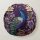 Elegante pauw op Paarse William Morris geïnspireer Rond Kussen