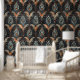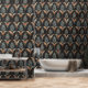 Elegante pauwenveer donker patroon. Elegant, gevoel natuur geïnspireerd ontwerp. Verwijderbare schil en stick behang is perfect voor appartementen, verhuur en korte termijn huisvesting. Peel en stick behang kunt u upgraden van uw kleine ruimte home decor en personaliseren uw verhuur met uw unieke ontwerp esthetische. Geen saaie witte dozen meer!
