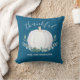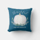 Dit sierlijke gepersonaliseerde werpkussen is versierd met een waterverf pompoen en eucalyptusgroen op een blauwgroen blauwe achtergrond. Er staat "Dankbaar" in stijlvolle scripttypografie. Gemakkelijk aan te passen. Originele Waterverf © Michele Davies.