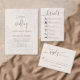 Deze eenvoudige details tijdlijn bijsluiter kaart met een bruiloft details QR code tijdlijn, en rsvp QR code sjabloon website, onze bruiloft website kalligrafie script, een elegante moderne typografie tijdlijn, tijdlijn tijdlijn voor bruiloft, zacht romantisch bloesem bloemengroen, botanisch roos bladeren blad, een minimalistisch minimum meer informatie, ceremonie recepties dans diner, cocktails drinken toast gejuich welterusten
