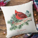 Elegant rood kardinaal botanische dennenbes waterverf ontwerp kerst gooi kussen met naam. Gemakkelijk om de tekst te veranderen. Feestelijke home decor voor het vakantieseizoen.