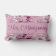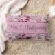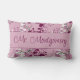 Elegante kersenbloesems, ook wel sakurabloemen genoemd, kussen ontworpen als bruidscadeau voor de bruid en bruidegom. Delicate roze bloemen met moderne bordeauxrode en witte kersenbloesems contrasteren met schaduw. Roze rugzak ondergrond. Personaliseer de tekstvelden met de aanstaande echtelieden.