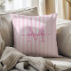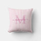 Elegante Roze & Witte Strepen Monogram Naam Kussen
