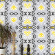 Deze peel and stick wallpaper heeft een prachtige en symmetrische compositie die naadloos zachte grijze tinten combineert met ingewikkelde patronen in geel en zwart. In het hart staat een gestileerde gele vorm die doet denken aan een delicaat hart centraal. Bekroond met drie stippen, straalt het warmte en charme uit. Rondom het centrale motief, spiegelende afbeeldingen wervelingen en bloemenelementen creëer een gevoel van beweging en continuïteit. Deze sierlijke details voegen diepte en visuele interesse toe. Een zwart wijnontwerp weeft elegant door de compositie en verbindt de verschillende elementen. Kleinere gele accenten die op paisley-patronen lijken, stippelen het behang uit en bieden heerlijke verrassingen. Deze speelse vormen breken de grotere elementen op en voegen speelsheid toe. Fijne grijze filigraan details verbeteren de algehele esthetiek. Ze weven rond de grotere vormen, waardoor een harmonieuze balans ontstaat tussen vet en ingewikkeld. Of u nu uw kantoor, slaapkamer of woonkamer aan het updaten bent, het voegt elegantie toe zonder de ruimte te overweldigen.