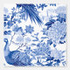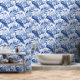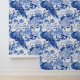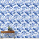 Transformeer snel en eenvoudig uw interieur met deze peel en stick behang met een prachtig blauw en wit toile de jouy patroon van pauwen en bloemen.