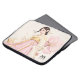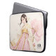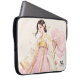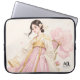 Elegante vrouw in gouden hanbok met kersenbloesem laptop sleeve