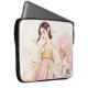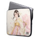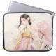Elegante vrouw in gouden hanbok met kersenbloesem laptop sleeve