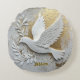 Elegante witte duif met gouden naam rond kussen