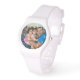 Elegante witte script familie foto horloge