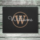 Klassieke zwarte en gouden monogram deurmat. U kunt de naam, het monogram personaliseren en het lettertype en de kleuren aanpassen om uw eigen unieke ontwerp te creëren. Ontworpen door Thisisnotme©