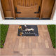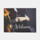 Doormat voor elektrische bas-gitaarspeler. De handen van de basspeler op de nek van een aangepaste bas. De tekst leest het traditionele welkomstwoord, maar je kunt het veranderen in alles wat je maar wilt. Een geweldig welkom in je huis of studio, of een geweldig cadeau voor je favoriete basspeler, muzikant of muziekliefhebber.