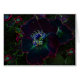 Wat een dramatisch patroon! Deze elektrische rozen zijn geschetst in diepe, rijke kleuren van rood, blauw, magenta, geel, groen en paars. De zwarte achtergrond versterkt het magische, mysterieuze gevoel. De extra rozen worden verspreid binnen deze notitiekaart.