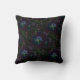 Wat een dramatisch abstract patroon op deze decoratieve goot kussen! Elektrische rozen worden geschetst in diepe, rijke kleuren rood, blauw, magenta, geel, groen en paars. De zwarte achtergrond versterkt het magische, mysterieuze gevoel. Een spiegelend afbeelding is op de rug.